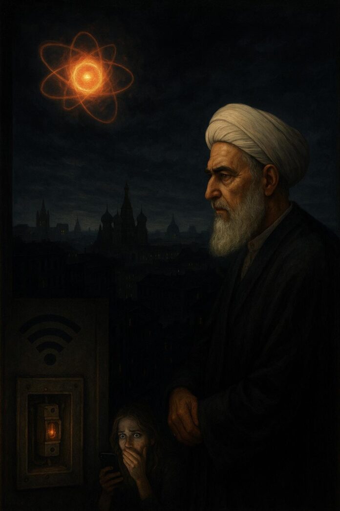 ¡Oh Avicena, que separabas ciencia de superstición! ¿Qué harías ante estos «cirujanos del caos» que recetan «apagones terapéuticos» para curar males que ellos mismos infectaron en laboratorios de think tanks (fábricas de ideas políticas)? El corte de luz no fue accidente, sino spoiler (avance) de un sistema que privatizó hasta los rayos del sol. Los medios, esos derviches del prime time, corean «sabotajes rusos» con la ligereza de pregoneros medievales anunciando cometas. El miedo, ya sea en formato NFT (certificados digitales únicos) o píldora homeopática, sigue siendo el bitcoin de vuestros mercaderes.