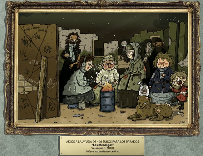 Los artistas siempre se han inspirado en los manifestaciones más naturales y espontáneas del ser humano. Nada más natural que esta estampa habida cuenta de la situación económica del país.