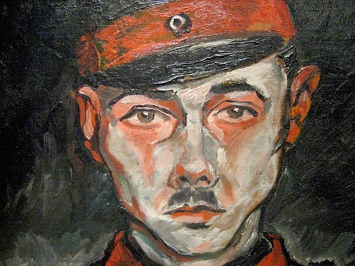 En uno de sus numerosos autorretratos, el artista alemán Walter Gramatté (1897-1929), se presenta como la viva imagen de la desolación. Bajo su gorra de combatiente de la I Guerra Mundial, sus pupilas taladran al espectador comunicándole una avasalladora tristeza, desde un rostro demacrado cuyos ojos resaltan bajo unas cejas enarcadas de dolor, y dentro de los trazos rojos magistrales que los enmarcan, y bajan por sus mejillas como surcos ardientes de un llanto inextinguido.