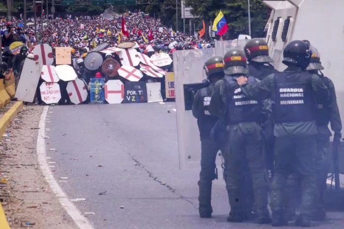 La Guardia Nacional Bolivariana de Venezuela atenta a diario contra sus conciudadanos desarmados que salen a la calle a la conquista de la libertad. Su único objetivo es derribar al Gobierno de Maduro y al régimen chavista que lo sostiene. Los venezolanos ya no prestan oídos a la Mesa de Unidad Democrática que se proclama a sí misma como oposición al Gobierno. Han dejado de hacerlo tras constatar la realidad de que esa MUD forma parte del chavismo. Así lo revela cada vez que pide elecciones en el marco constitucional chavista que ha llevado a Venezuela al estado de cosas actual.