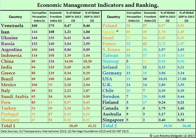 Tenemos entonces que, producto del mesianismo político y de la corrupción como factor de gobierno, se ha llevado su orden al límite, colapsando la producción en general (están “des-sembrando el petróleo”, tema triste pero capital), y de la petrolera, en particular, y todo con la ayuda fervorosa de algún economista español, por cierto. Sin Estado de Derecho (véase anterior tabla) es imposible que se recupere la oferta (piensen en Cataluña), la producción, y la de petróleo, dadas las complejidades y dificultades de sus inmensos yacimientos, menos.